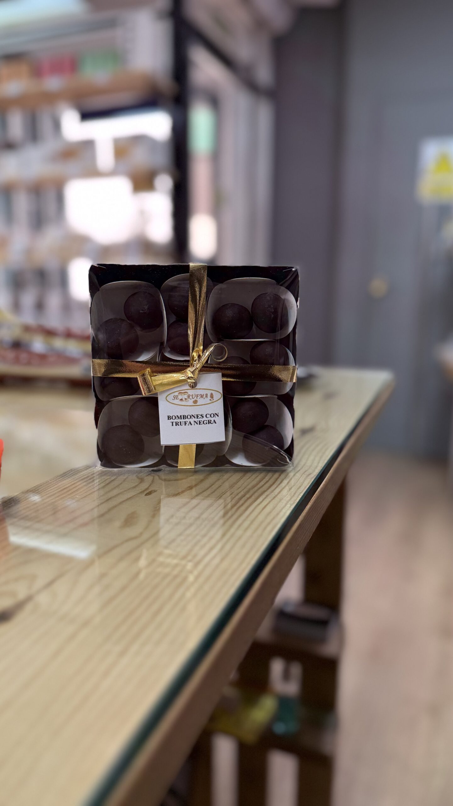 - Son unos bombones 70% cacao al cual le añadimos aceite con trufa negra. Consiguiendo un producto delicioso.